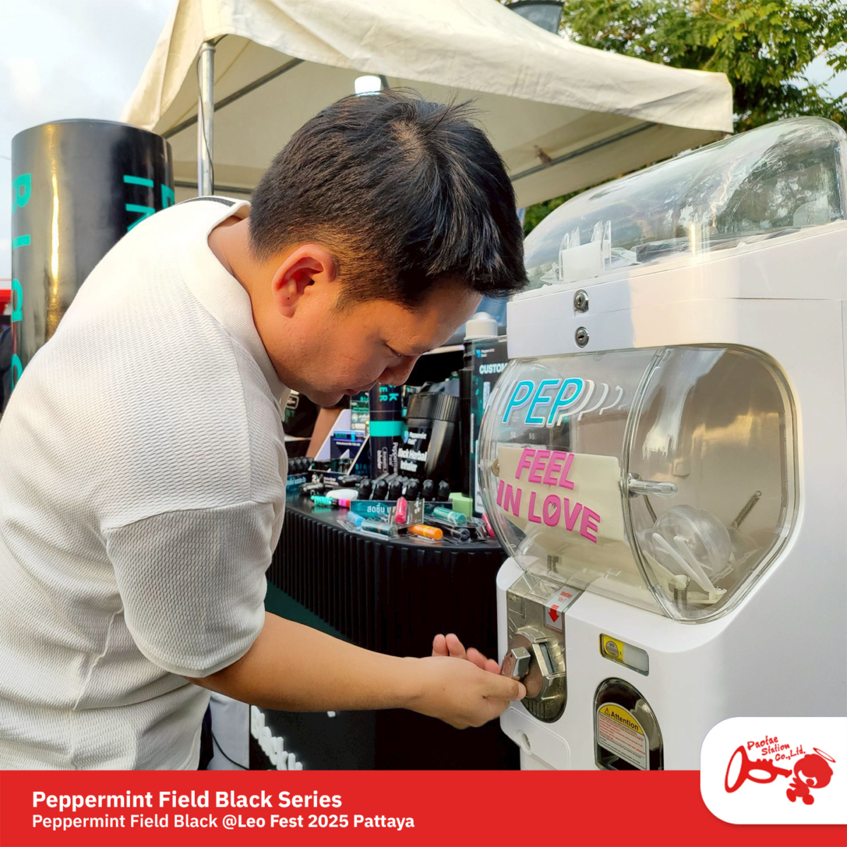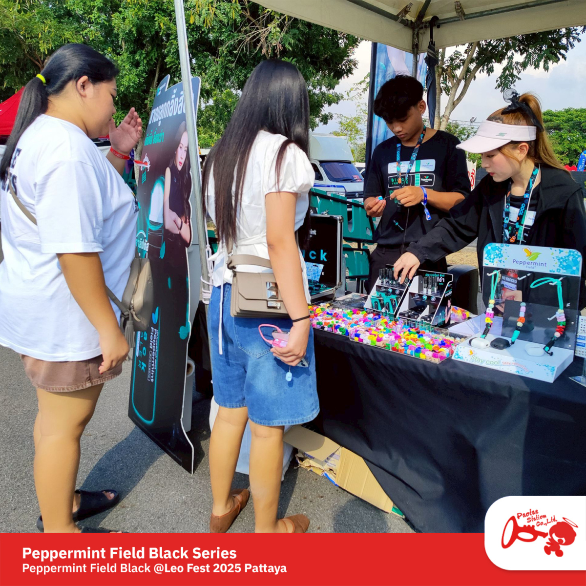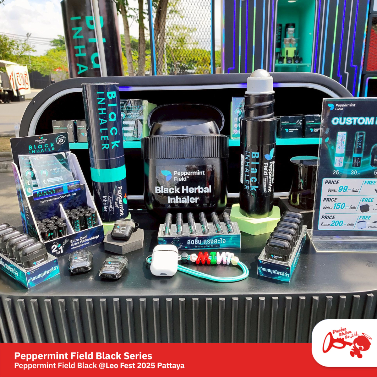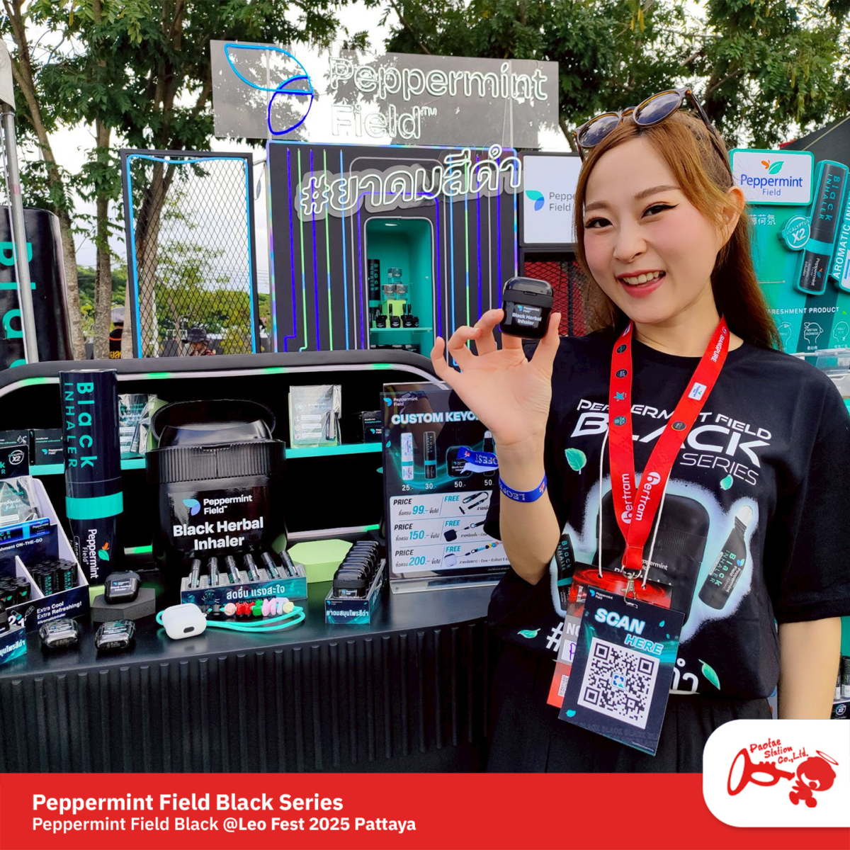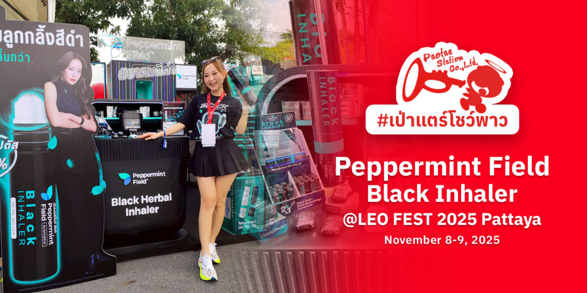 ครั้งนี้เราได้ร่วมออกบูธกับ Peppermint Field โปรโมตผลิตภัณฑ์ใหม่ล่าสุด Peppermint Field Black Series — ยาดมสีดำดีไซน์เท่🖤เอาใจชาวร๊อค พร้อมกิมมิคสายห้อยยาคมสุดน่ารัก